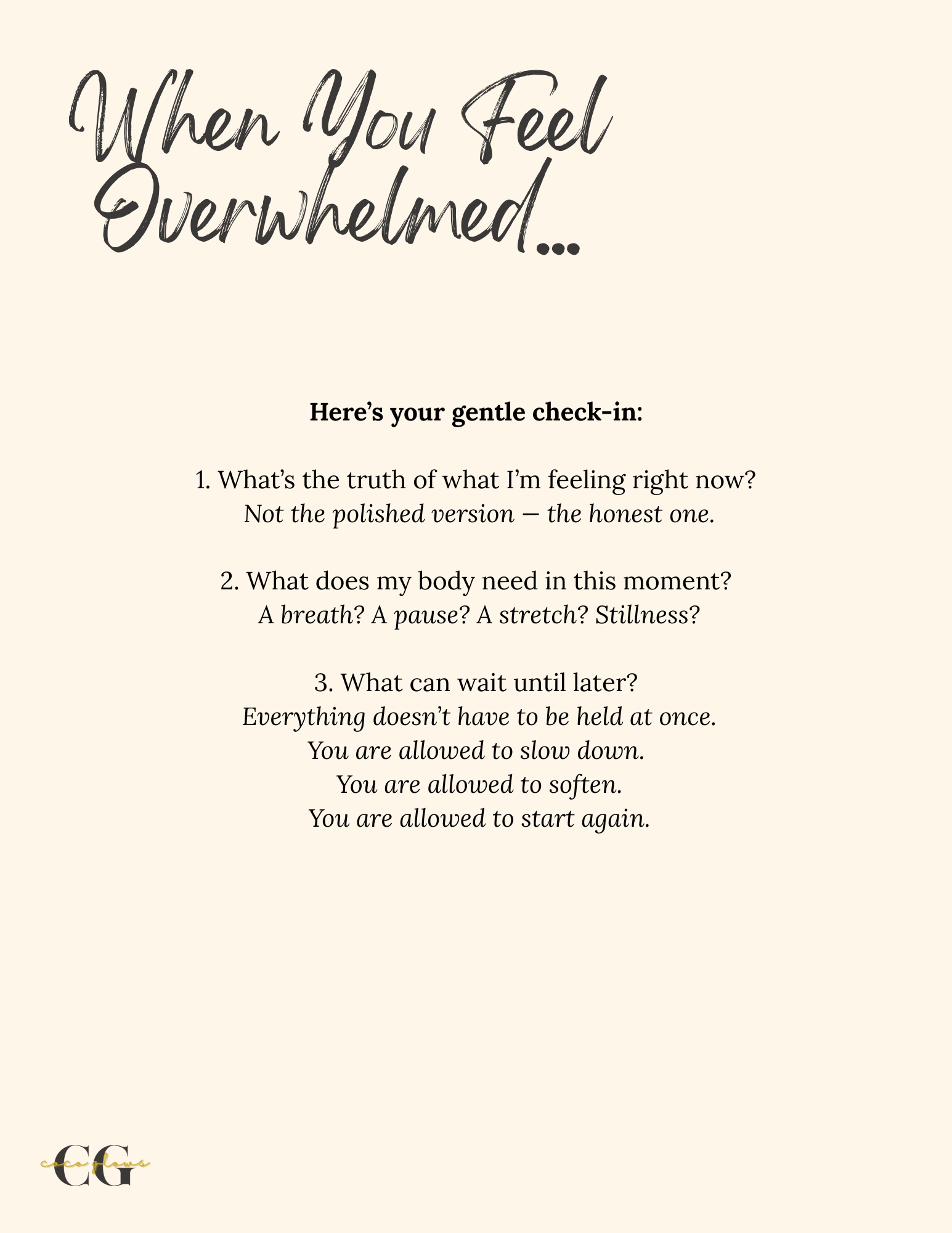 Including âWhen You Feel OverwhelmedâŚâ â a gentle check-in for the days everything feels like too much.